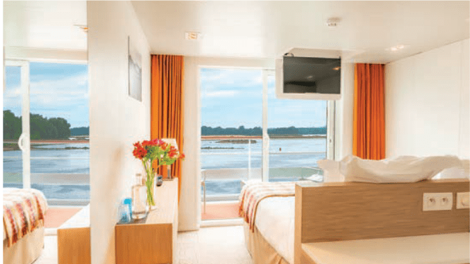 Les cabines vous donnent une vue sur l’extérieur, avec une baie vitrée ou un balcon à la française et un équipement de taille : TV satellite, coffre-fort, sèche-cheveux, climatisation, salle d’eau avec douche et toilettes privatives.